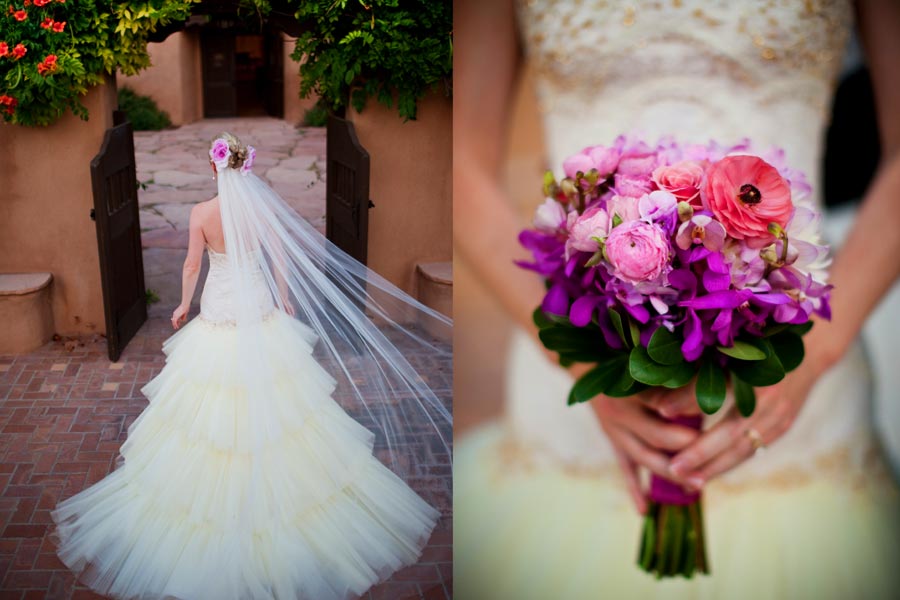 Nancy and David were married at the unique and beautiful Los Poblanos Historic Inn and Cultural Center in Albuquerque, New Mexico, surrounded by lovely gardens of wildflowers (and the occasional peacock!).